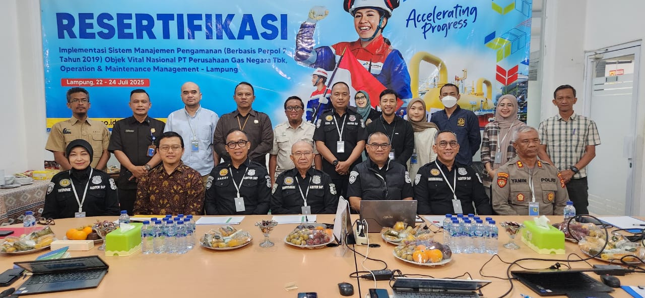 Lampung, AktualNews – Tim Audit Resertifikasi Sistem Manajemen Pengamanan (SMP) dari Korsabhara Baharkam Polri secara resmi memulai kegiatan audit di PT Perusahaan Gas Negara Tbk, Operation & Maintenance Management (OMM) Lampung.