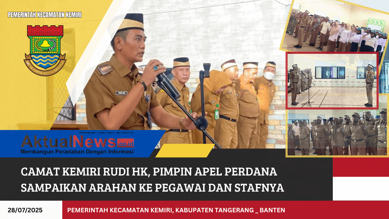Tangerang, AktualNews – Camat Kemiri yang baru, Rudi HK, resmi memimpin apel upacara perdana pada Senin pagi (28/7), bertempat di ruang aula Kantor Kecamatan Kemiri. Upacara ini menjadi momen perdana bagi Rudi HK sejak dirinya dilantik dan mulai menjabat sebagai Camat Kemiri menggantikan camat sebelumnya pada Rabu lalu, (22/07).
