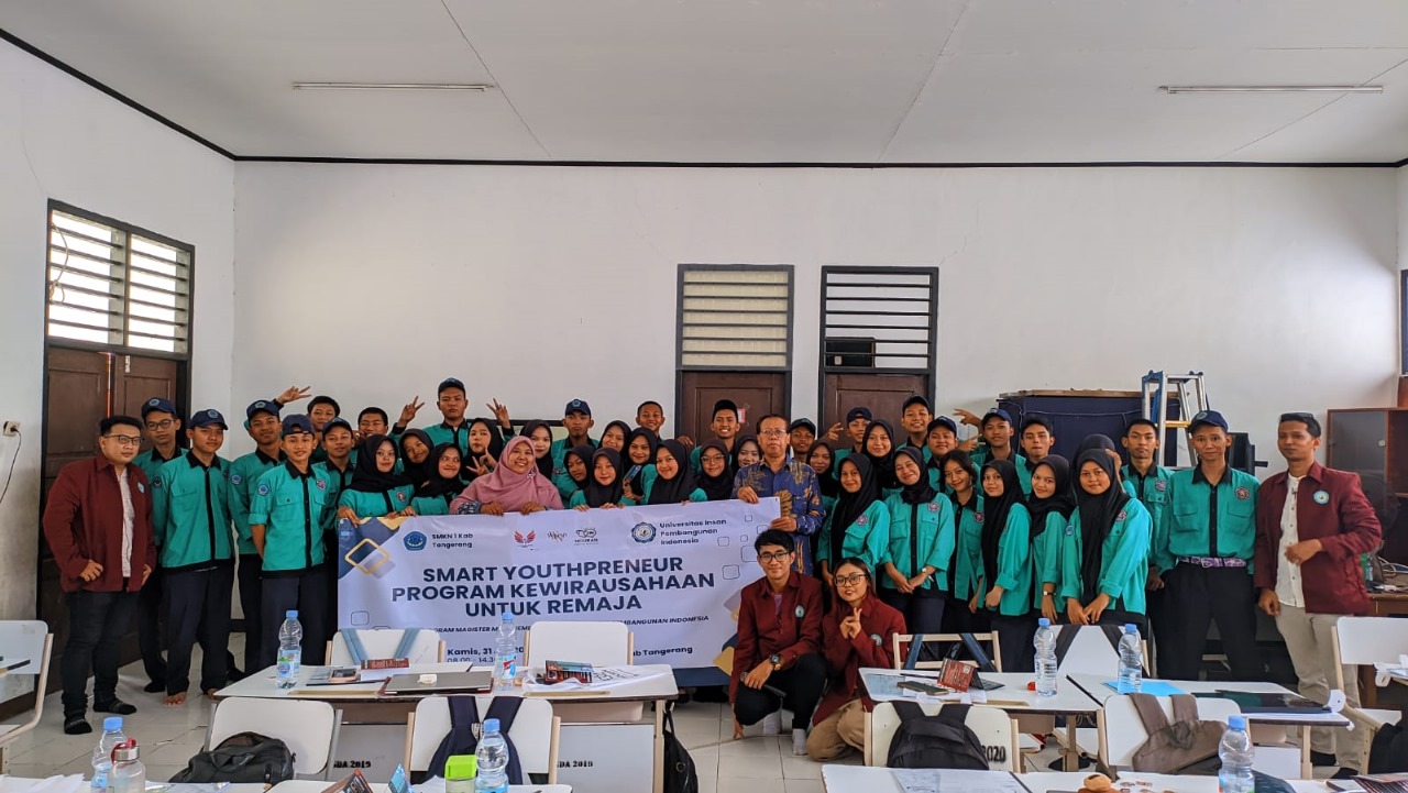 Tangerang, AktualNews - Mahasiswa Program Magister Manajemen (MM) Universitas Insan Pembangunan Indonesia (UNIPI) melaksanakan kegiatan Pengabdian Kepada Masyarakat di SMK Negeri 1 Kabupaten Tangerang, yang mengusung Tema Smart Youthpreneur Program Kewirausahaan Untuk Remaja.